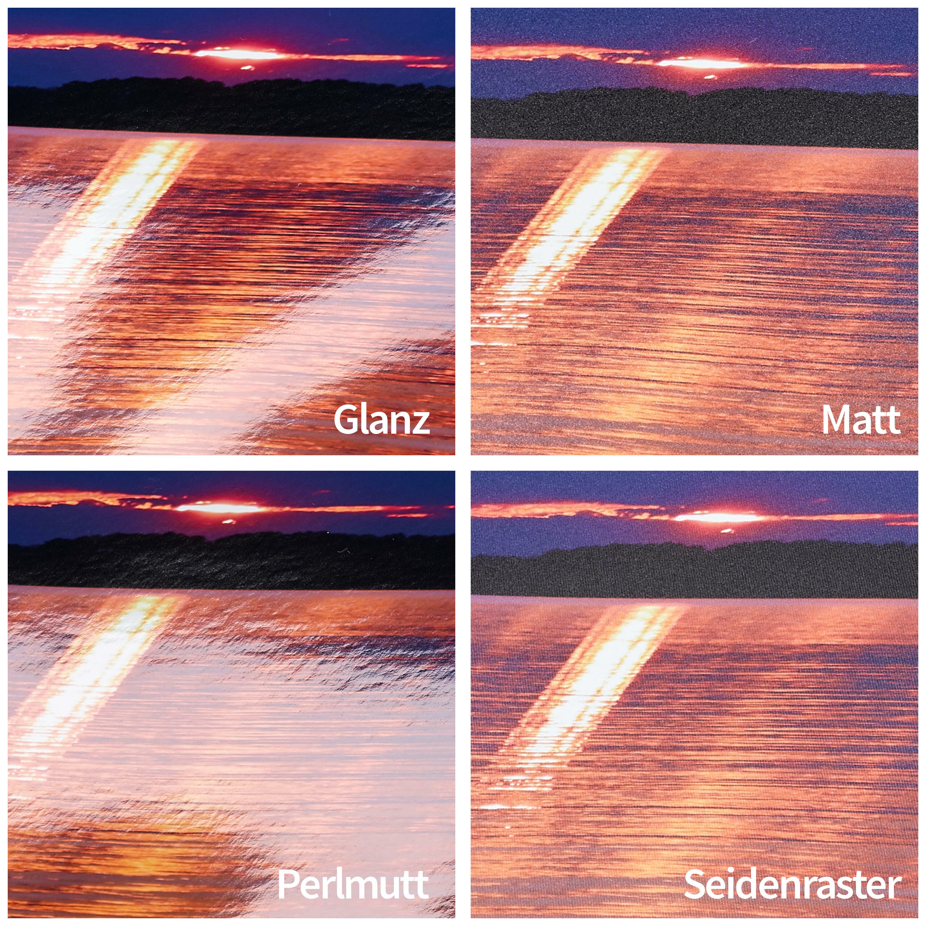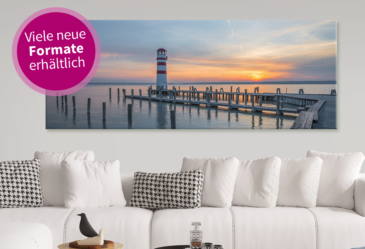 Eine weitere Alternative zu den klassischen Fotos als Poster stellen unsere Fotoleinwände dar: Auch hier erzielen Sie einen wirkungsvollen 3D-Effekt und bringen echtes Galerie-Ambiente in Ihre Wohnräume. Ihre Fotos kommen auch auf Leinwand gedruckt in brillanten Farben zur Geltung und zeigen sich äußerst lichtbeständig. Wählen Sie auch hier zwischen verschiedenen Formaten und stimmen Sie Ihre Fotoleinwand auf Ihre Wände ab.